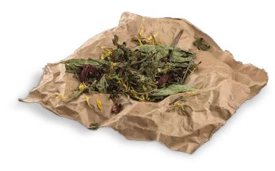 Ingredienser: Nældeblade, persillestængler (18%), dildstængler, pebermynteblade, mælkebøtteblade, calendulablomster, echinacea blade, hibiskusblomster (5%)