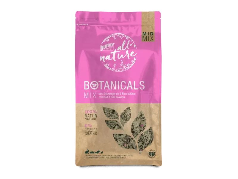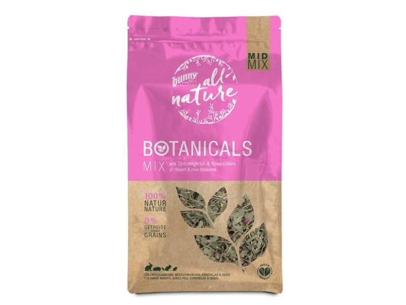 Forkæl dit kæledyr med Bunny Natures Botanicals Mid med vejbred og roser til kaniner og gnavere