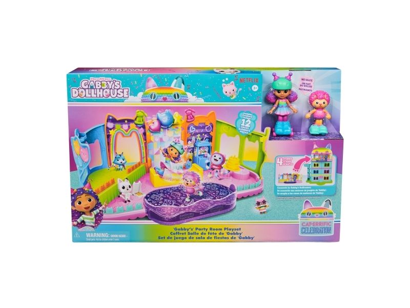 Includes: 1 Playset, 2 Figures, 8 Accessories, 1 Dollhouse DeliveryGabby's Dollhouse , Party Room Playset with Exclusive Toy Figures, Dollhouse Furniture, Accessories & Fidget Play, Kids Toys for Girls and Boys Ages 3+. Type: Action/Adventure, Recommended age (min): 3 yr(s), Product colour: Multicolour