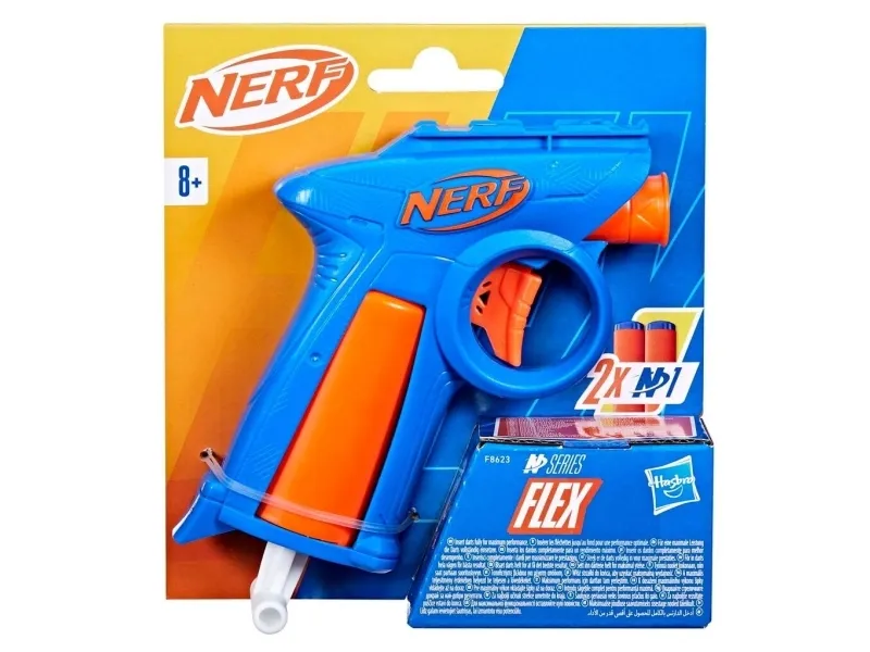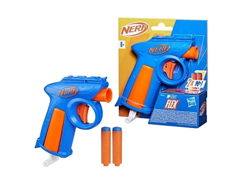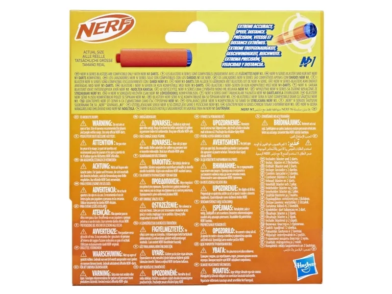 Nerf-merket forbedrer leken med høytytende dartblastere i Nerf N-serien og Nerf N1-darter! Du har ferdighetene til en Nerf-spiller, nå har du blaster og darter til å få et overtak i lek inne og ute. Nerf-merket, skaperne av skumdarter, lanserer den neste evolusjonen i avfyring av N1-skumdarter i Nerf N1-serien. De skytes med EKSTREM NØYAKTIGHET, HASTIGHET OG AVSTAND! Flex-dartblasteren i Nerf N-serien har en kompakt størrelse som er flott for leker som krever fleksibilitet og sniking. Nerf-blasteren har plass til 1 dart, har ladehåndtak som trekkes tilbake, og inneholder 2 Nerf N1-skumdarter. Blastere i Nerf N-serien er kun kompatible med N1-darter i Nerf N-serien. Vernebriller anbefales (ikke inkludert). NERF og HASBRO og alle relaterte varemerker og logoer er varemerker som tilhører Hasbro, Inc.