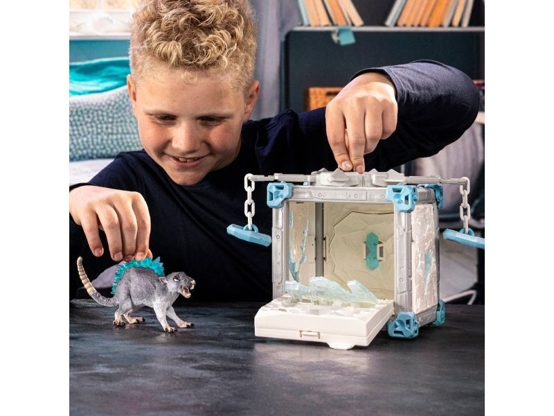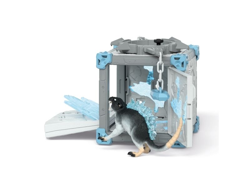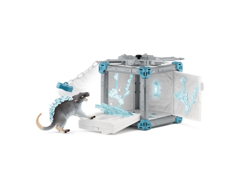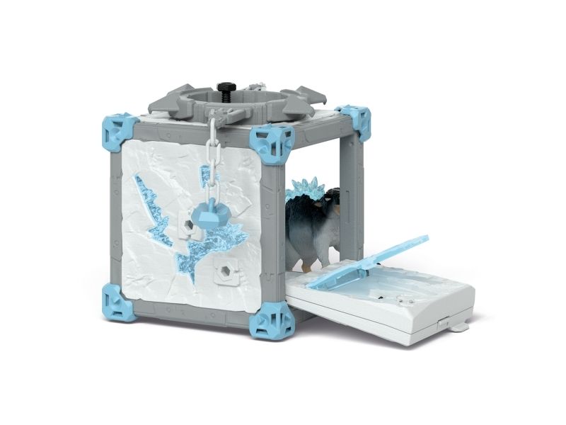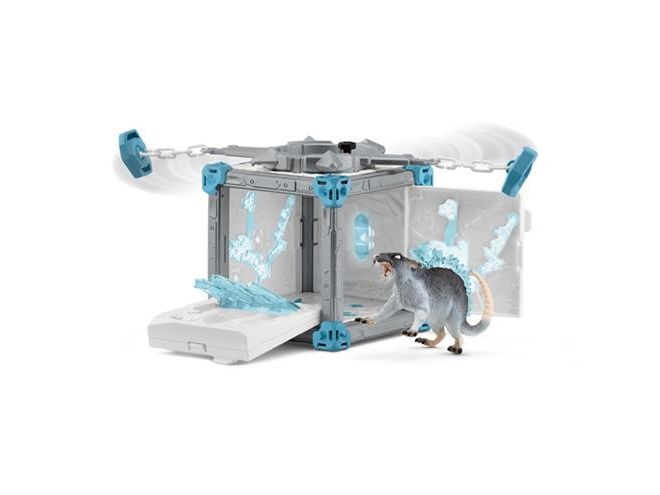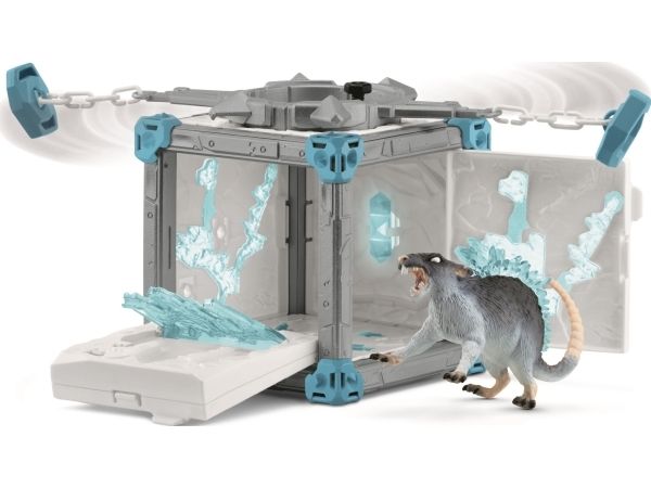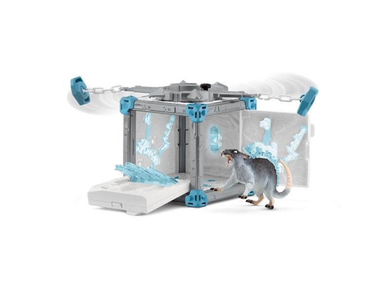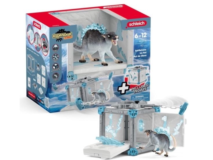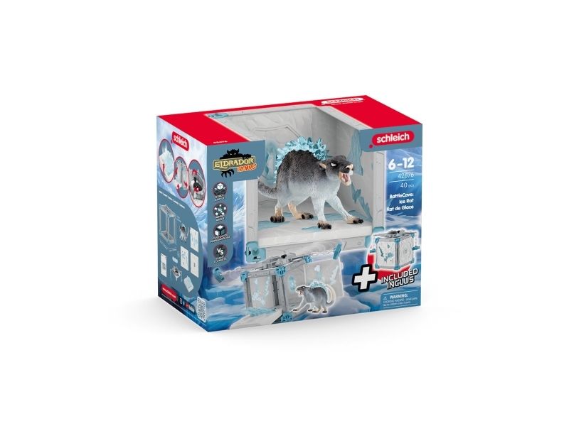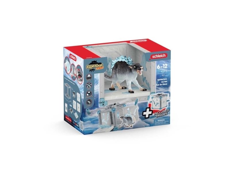 Isrotten ser virkelig ond ut, der han står og venter ved siden av BattleCave. De gjennomtrengende iskalde øynene betrakter alle som vil ta opp kampen for å stjele iskrystallen fra BattleCave. Over BattleCave sirkler en farlig isslynge i en lang kjetting. Den treffer alle som våger å nærme seg. Men selv om du klarer å komme forbi hindringen, er du fortsatt langt fra i mål. Du må gå inn i BattleCave for å få tak i iskrystallen. Der venter imidlertid en felle: Plutselig spretter et skarpt isflak opp slik at du ikke får tilgang. Finnes det noen som kan vinne over isrotten? BattleCaves fra ELDRADOR® CREATURES forvandler ethvert barnerom til en spenningssone. Hvem vil utkjempe den intense kampen? Alle BattleCaves kan kombineres. Skumle tunneler og lure feller venter på angriperne. På den store arenaen kan de så møtes til den endelige duellen. For en kamp!