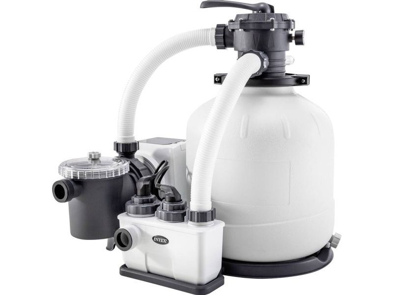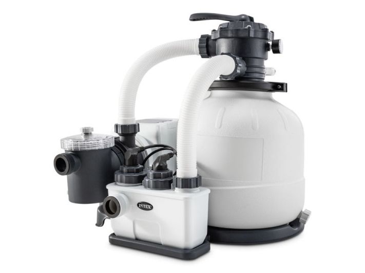 I dette produkt af mærket Intex er der kombineret et sandfilteranlæg og et saltvandsystem for at få rent flydevand. Den er billig, nem og let at vedligeholde. Afhængigt af poolens størrelse varierer den nødvendige saltmængde. En tabel i håndbogen angiver, hvor meget salt der skal bruges for at opnå det ideelle saltniveau på 3,0 g/l og holde det på dette niveau.
