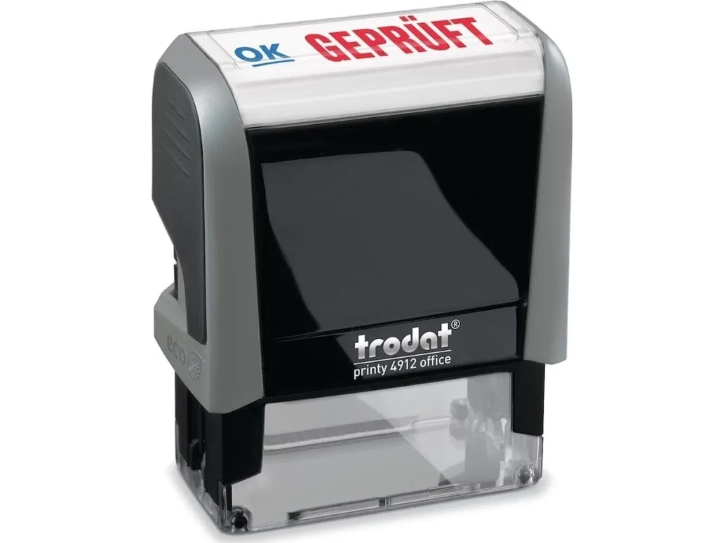 Trodat Printy 4912 OFFICE - Stempel - selvfargende - 2-farget (blå, rød) - standardtekst - GEPRÜFT - 18 x 47 mm - grå