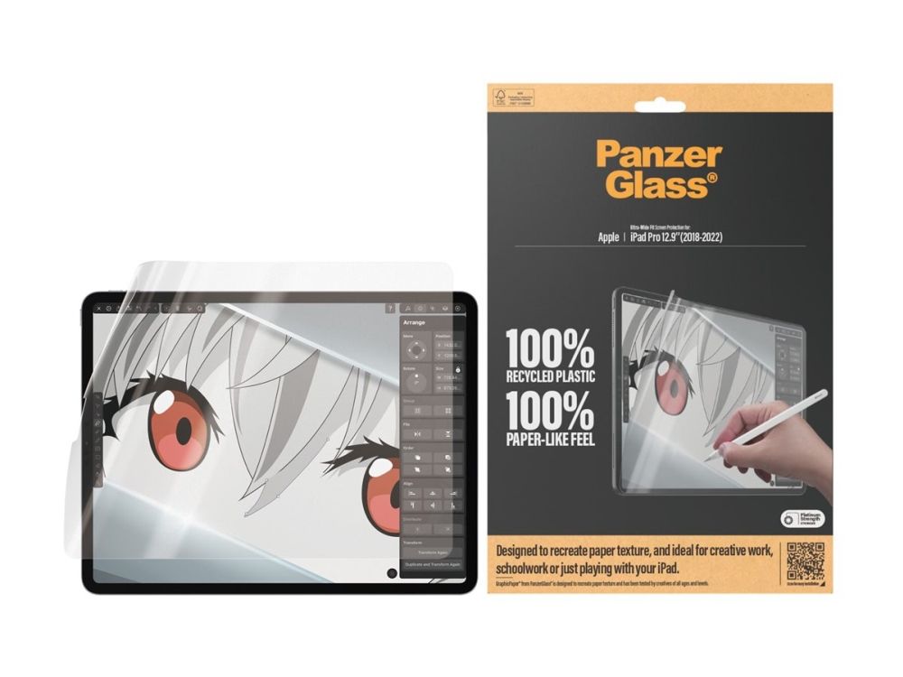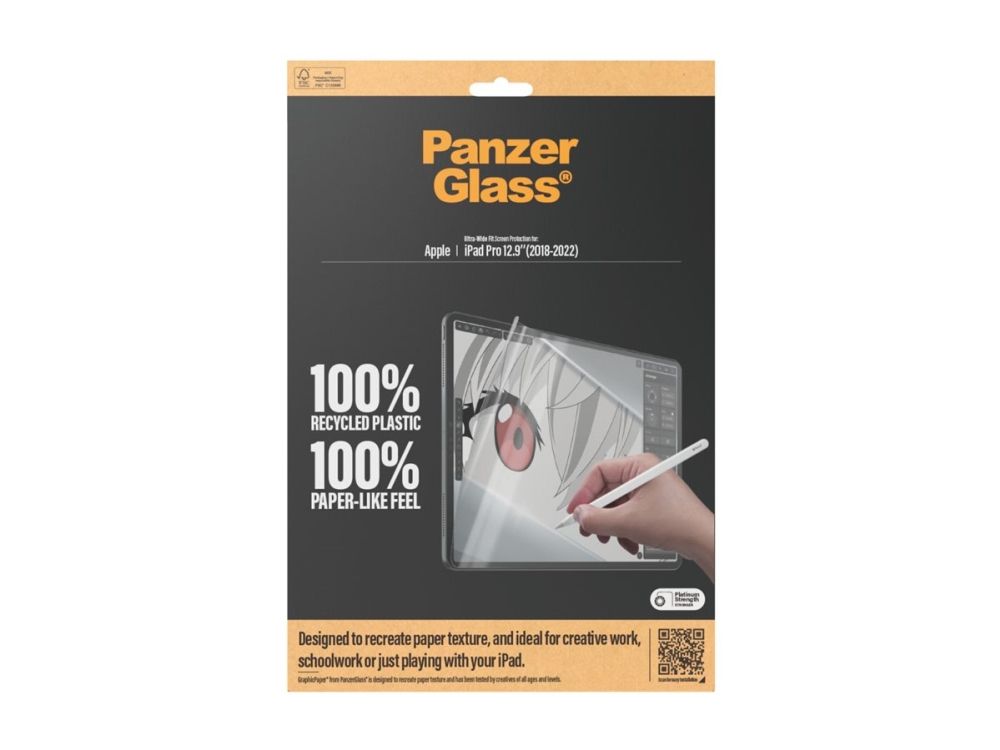 Introducing our updated award-winning GraphicPaper screen protector, now with 100% recycled plastic. It is designed to recreate the texture of paper while also protecting your tablet from the hazards of everyday life. Tested by creatives of all ages and levels, it is ideal for creative work, school work, note-taking, sketching, drawing, or simply playing games. The screen protector is scratch and shock-resistant and even features a smudge-free coating. The Ultra-Wide Fit screen protector covers the entire front surface of your tablet while still leaving room for a case. It provides a clear view of your screen and comes in FSC-certified packaging that can be recycled.