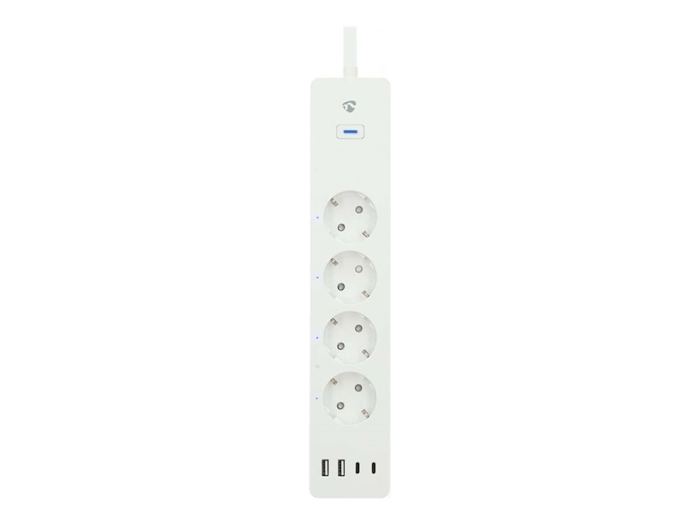 Nedis SmartLife - Smart strømstripe - AC 220 - 240 V - 3680 watt - utgangskontakter: 4 (4 x strøm type F, 2 x USB, 2 x 24 pin USB-C (PD)) - 2 m kabel - hvit