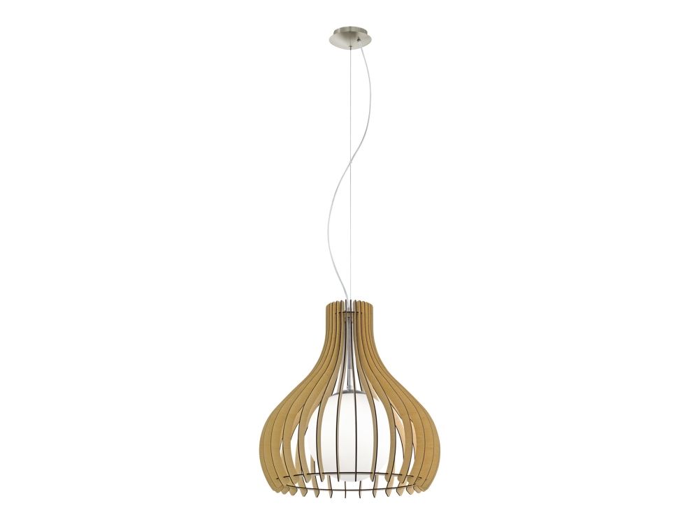 This pendant luminary from the series Tindori is made of steel, wood and glass.