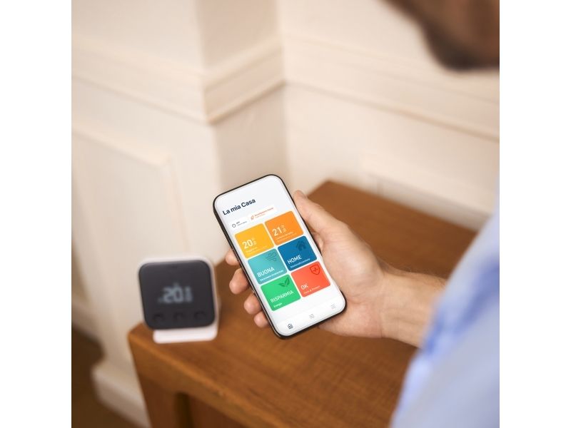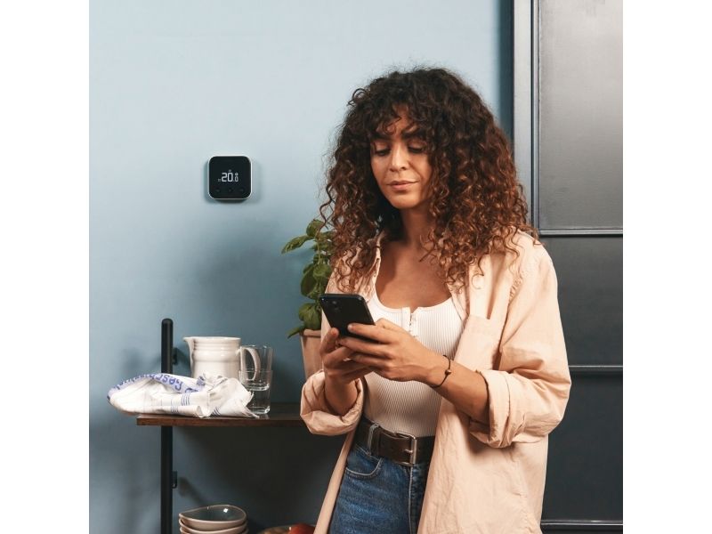 Tado° trådløs temperatursensor X er en ekstra trådløs temperatursensor som utvider Smart Radiator Thermostats X, slik at du kan kontrollere oppvarmingen basert på en mer presis temperaturmåling i rommet. Sensoren gjør det enkelt å kontrollere flere radiatorer i samme rom og få mer stabil komfort, fordi temperaturen måles der det gir mest mening – ikke nødvendigvis rett ved siden av radiatoren. Du kan plassere den fritt eller montere den på veggen og kontrollere alt via appen (eller smarthøyttaler) når du er koblet til internett via tado° Bridge X eller en annen Thread border-ruter.