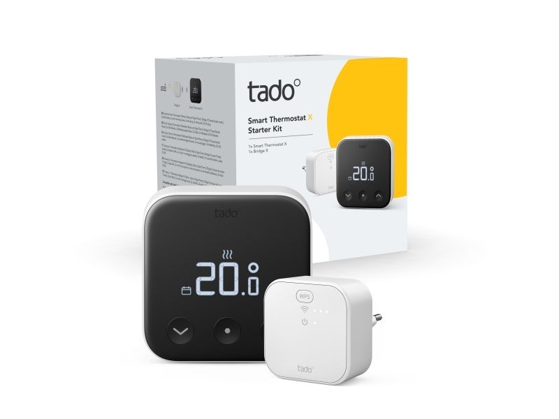 tado° Smart Thermostat X – Startpakke er den enkle måten å få intelligent varmestyring på når du vil erstatte din eksisterende romtermostat og få presis temperaturkontroll via app og smarthøyttaler. Settet inkluderer en kablet Smart Thermostat X for Relay eller OpenTherm og en tado° Bridge X (Thread border router), som kobler systemet til internett via Wi-Fi-ruteren din, slik at du kan styre varmen hjemmefra og på farten. Løsningen er designet for gjør-det-selv-installasjon på under 5 minutter med appveiledning og kan brukes med de fleste kjeler og varmepumper (Relay/OpenTherm) – og den kan også styre vannbasert gulvvarme.