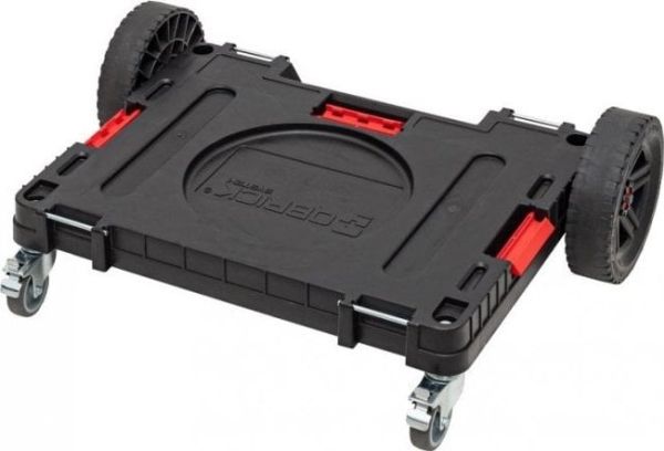 2 large 9 inch rubber covered wheels; 2 swivel wheels with brakes; Ease of overcoming all terrain difficulties; 3 durable polyamide connectors; Convenient maneuvering step; Dedicated bucket area; 4 mounting bracket points; Made of strengthened raw material