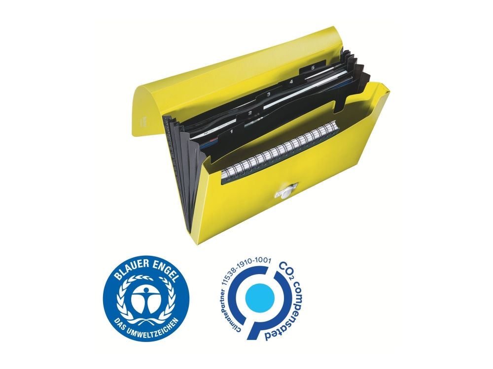 Leitz Recycle - Utvidbar mappe - 5 rom - 5 deler - fortrykt: 1-5 - for A4 (210 x 297 mm) - kapasitet: 250 ark - med fliker - gul