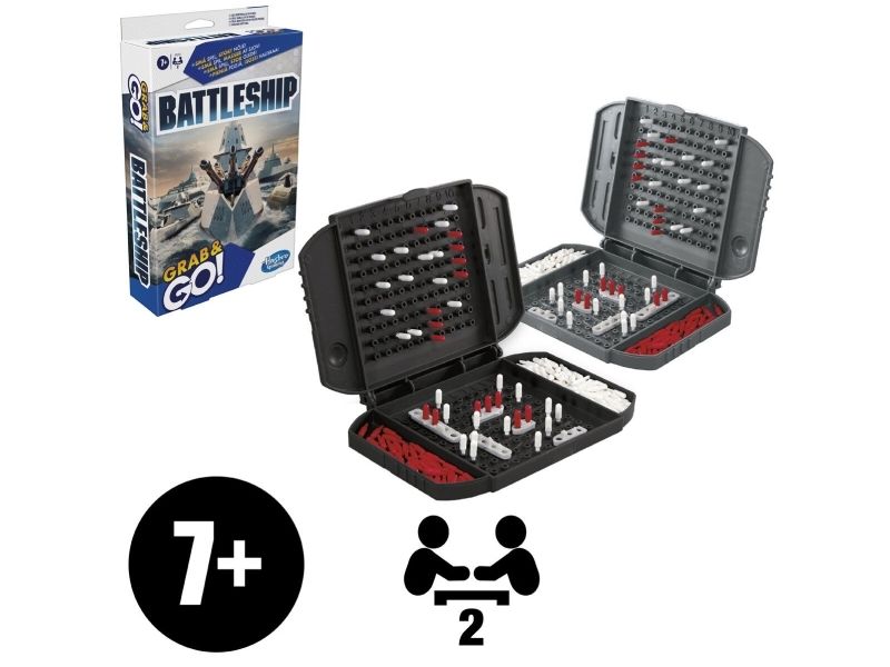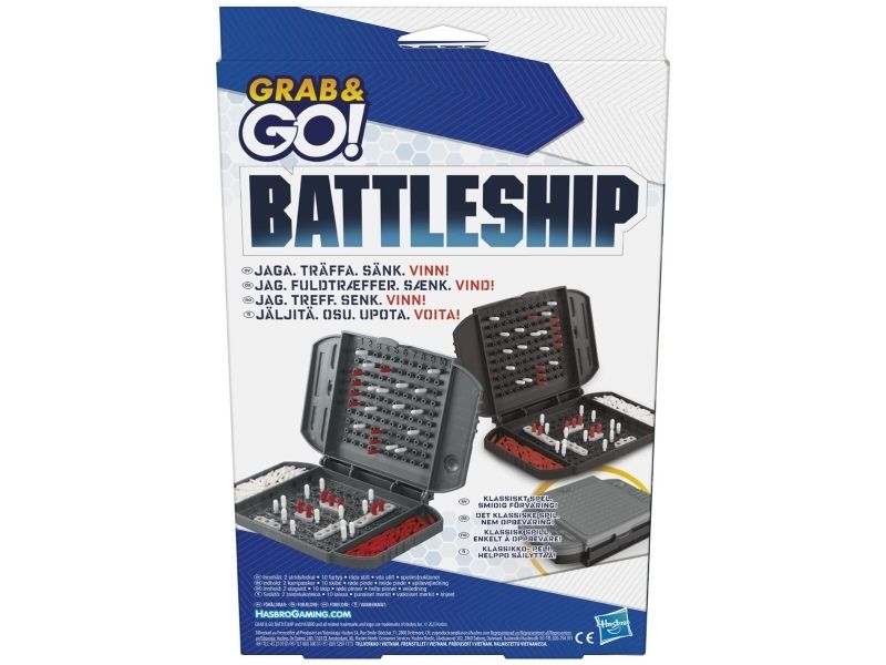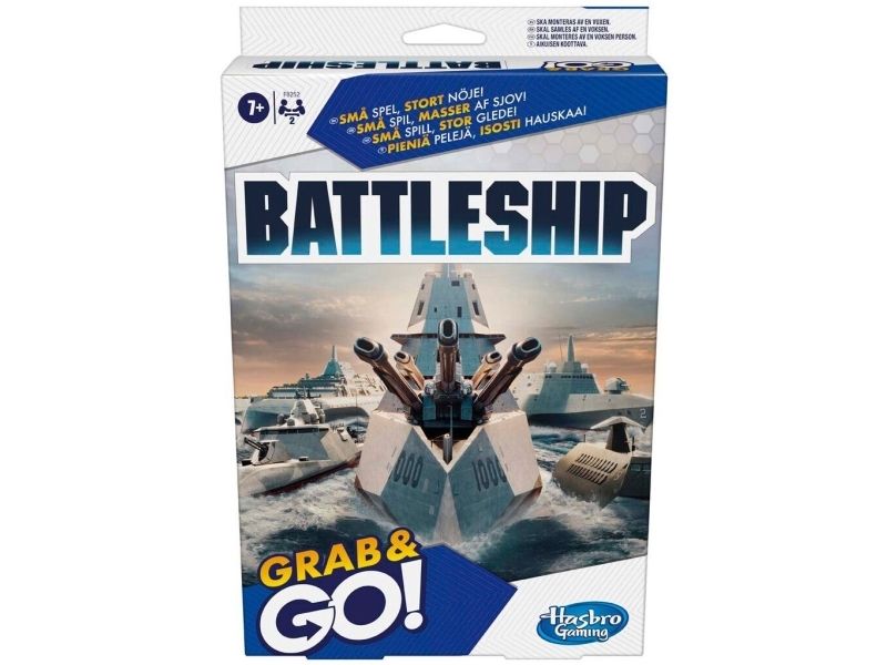 Led flåten din til seier mens du er på farten med dette kompakte Battleship Grab and Go-spillet! Det samme klassiske Battleship-spillet i reisestørrelse. Klarer du å synke skipene til motstanderen før de gjør det samme mot deg? Styr kampen fra spillenheten og plasser hangarskipet, slagskipet, ubåten, jageren og tankskipet på havgitteret. Dette bærbare reisespillet for barn fra 7 år er for 2 spillere og lar deg spille Battleship-spillet mens du er på tur. Det er enkelt å klargjøre, og kommer med innebygd oppbevaring. Når kampen er over, legger du pluggene inn i spillenhetene og fester dem sammen. Hersk over havene med Battleship Grab and Go-spillet! Hasbro Gaming og alle tilhørende begreper er varemerker som tilhører Hasbro.