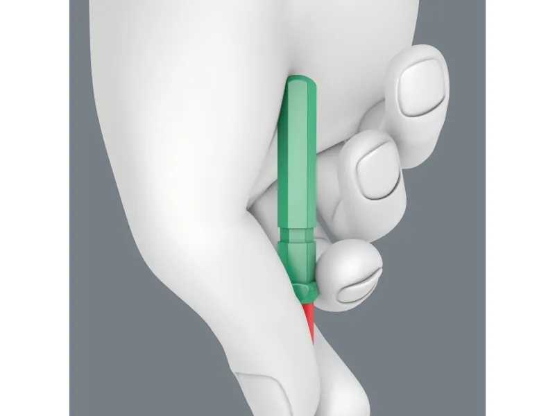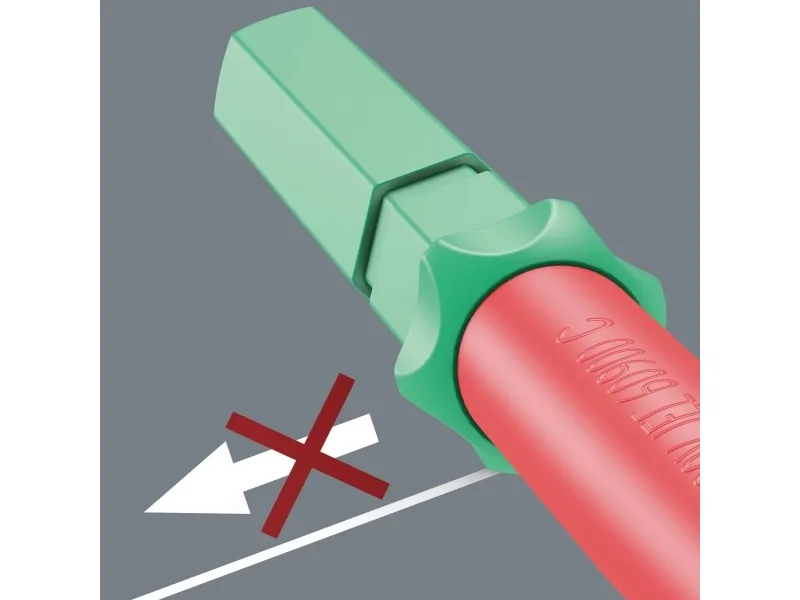 VDE klinge til Kraftform kompakt greb-/udskiftningsklingesystem. Lynhurtig udskiftning af klinge uden specialværktøj. Individuelt testet værktøj iht. IEC 60900. Stykkontrol ved 10.000 V for sikkert arbejde ved tilladte spænding på 1.000 V. Wera Wera Black Point-spidsen giver nøjagtighed og optimeret korrosionsbeskyttelse. Med værktøjsfinderen Take it easy: Farvemærkning efter profiler og pågraveret størrelsesangivelse. Den sekskantet afrulningsbeskyttelse forhindrer at klingen utilsigtet ruller væk.