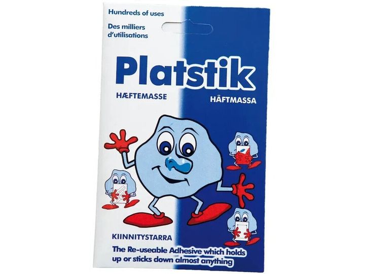 Hæftemasse 60gram, platstik (blå klæbemasse) elefantsnot, lærerens tyggegummi - velegnet til mange formål. Genanvendeligt
