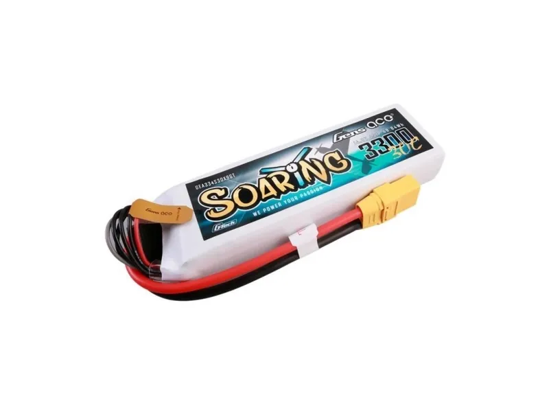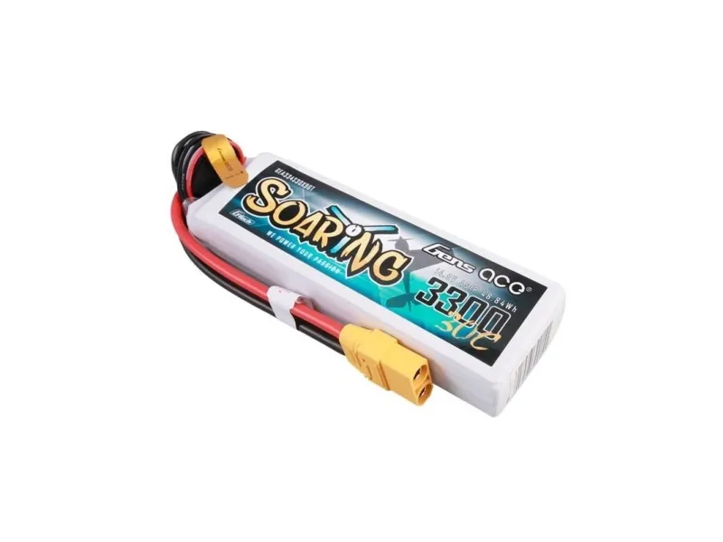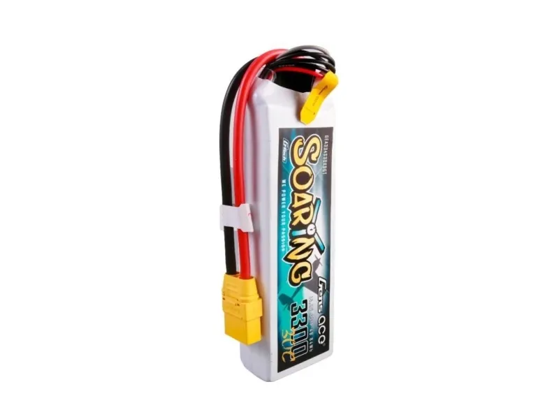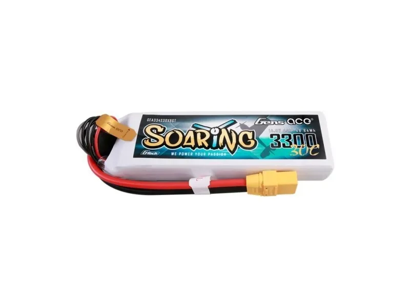 The Gens ace G-Tech Soaring LiPo Battery is an excellent power source for advanced flying devices such as FPV aircraft, RC wings, quadcopters and hexacopters. With a capacity of 3300 mAh and a voltage of 14.8V (4S), the product offers a solid supply of energy for long and efficient flights. The recommended charging speed of 1-3C ensures fast and safe energy renewal, while the XT90 connector type and JST-XHR balancer plug guarantee easy connection and wide compatibility. What's more, the weight of 328 g and compact dimensions of 137 x 42.5 x 26 mm allow the battery to be placed in various designs without excessive impact on the aerodynamics and weight of the model.