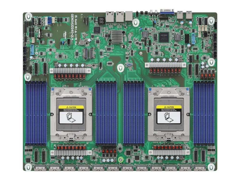ASRock Industrial GENOA2D24G-2L+ - Hovedkort - LGA6096 Socket - 2 Støttede CPU-er - USB 3.2 Gen 1 - 2 x Gigabit LAN - innbygd grafikk (CPU kreves)
