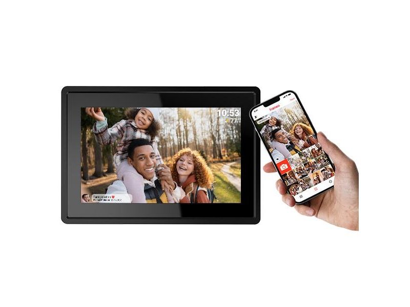 The 7" digital Wi-Fi photo frame allows you to send photos directly from your smartphone. This innovative device offers a great way to share pictures with friends and family. The IPS touchscreen provides sharp, high-quality images.