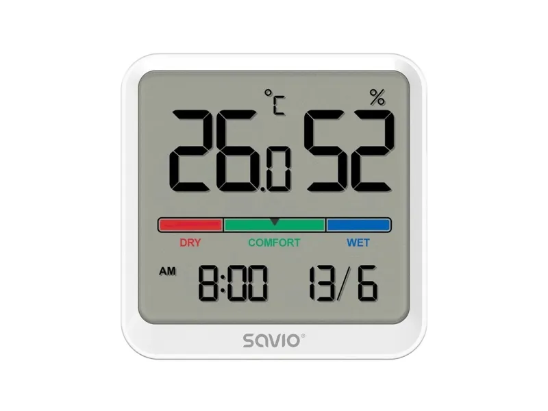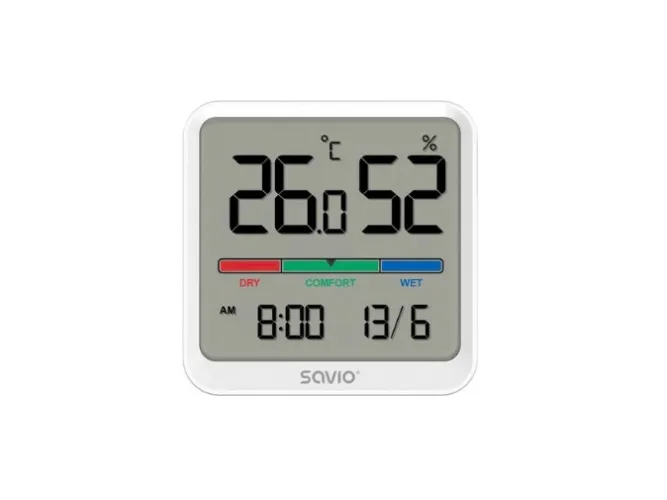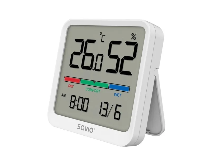 Compact size and versatility Savio’s CT-01/W is a high-tech and multifunctional electronic accessory that will work well both at home and in the workplace. Its elegant aesthetics and compact size allow it to blend easily into any interior. It allows you to effectively plan your activities and maintain proper indoor air quality. This device is also equipped with calendar and timer functions.