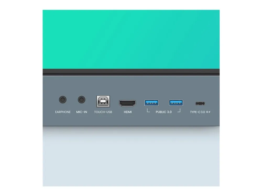 VGA-inndata 3 x HDMI-inngang HDMI-utgang DisplayPort 2 x USB 2.0 2 x USB 3.0 USB-C 2.0 USB-C 3.0 with 65W Power Delivery Berøring Lydinngang Øretelefoner SPDIF-utgang Gigabit LAN Mikrofon RS-232