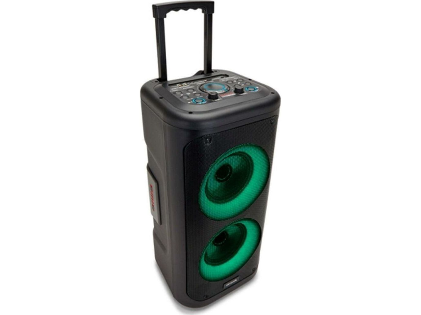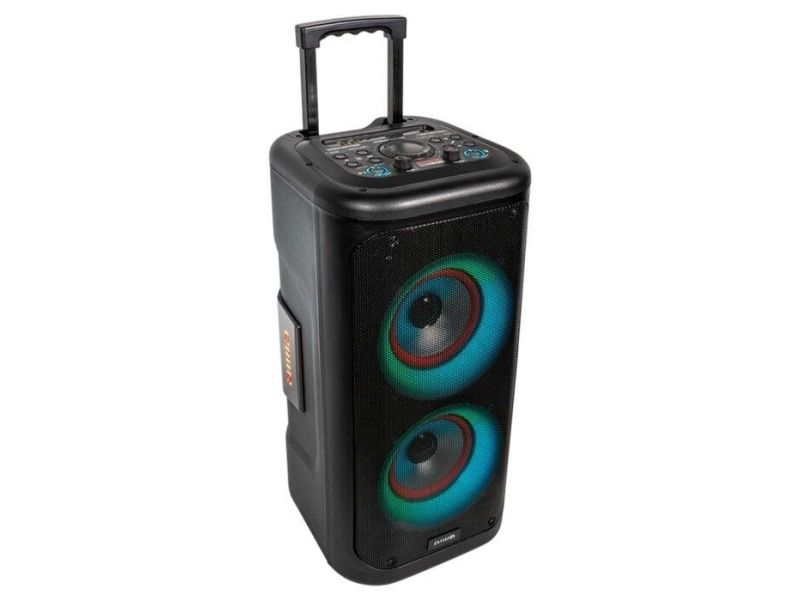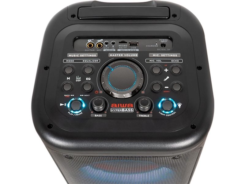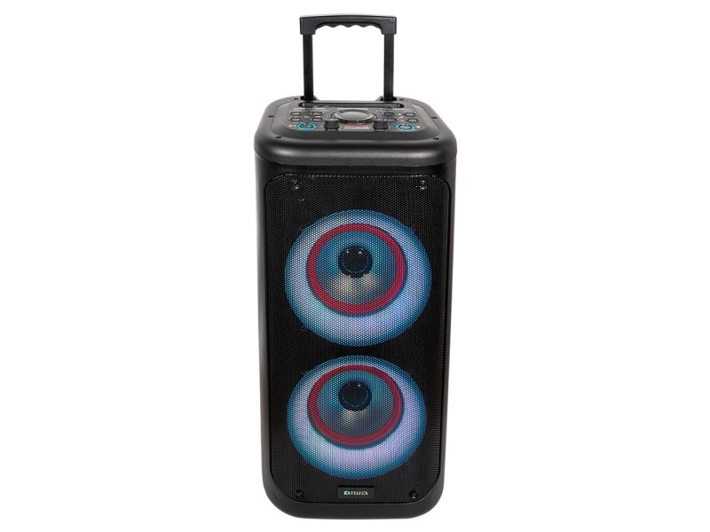 Aiwa KBTUS-450. RMS rated power: 40 W, Frequency range: 90 - 20000 Hz, Signal-to-Noise Ratio (SNR): 80 dB. Type: Trolley Public Address (PA) system, Product colour: Black, Cord length: 1.5 m. Volume control: Buttons, Supported radio bands: FM. Connectivity technology: Wired & Wireless, Bluetooth range: 10 m, Headphone connectivity: 3.5 mm/6.35 mm. Power source type: AC, Battery, DC, AC input voltage: 100 -240 V, Battery technology: Lithium