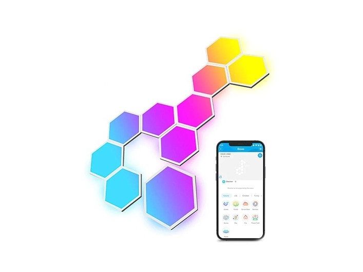 Govee Glide Hexa Light Panels are composed of 10 panels that can be assorted into various shapes. It can be controlled using your favorite voice assistants such as Alexa and Google Assistant as well as the Govee Home App. You can even customize your design, effects, colors, and more.