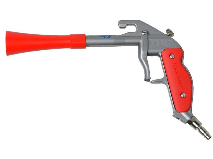 Rengøringssprøytepistol basert på Tornador-teknologi til hurtig og effektiv rengjøring av alle rom, hvor adgangen er begrenset som ventilationsåpninger, sædeskinner, dørbeslagsbakker, instrumentbrætter samt til hurtig rengjøring av reparasjon og reservedele mv. unik lufthvirvelteknologi (pneumatisk fræsemaskine) selv genstridig forurening kan elimineres raskt og pålitelig. Ideel til brukte kjøretøydetaljer, til fjernelse av hundeår eller omstrukturering av velouroverflader.