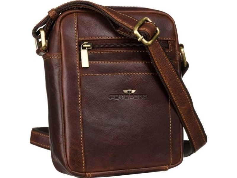 Peterson Messenger bag i skinn Peterson PTN TB-117-COM COGNA cognac