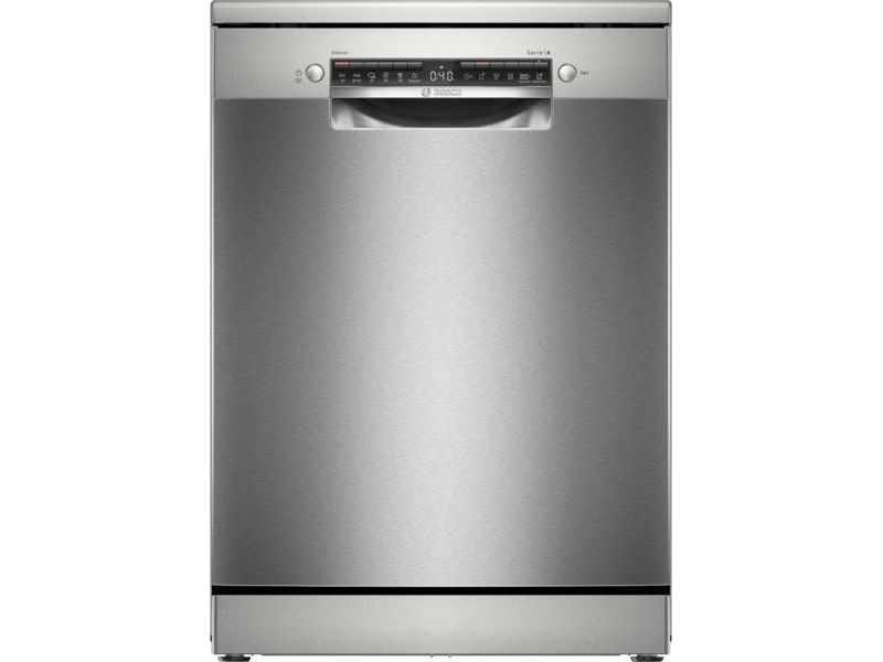 Discover the Bosch Serie | 4 SMS4HVI00E dishwasher, a freestanding, built-under solution designed for modern kitchens. This dishwasher offers a range of features aimed at providing convenience, efficiency, and superior cleaning performance. With a capacity to accommodate 14 place settings and equipped with 6 programs, including an Eco option, it delivers thorough cleaning while being mindful of water and energy consumption. The adjustable Rackmatic upper rack, foldable plate holders, and cup shelves offer flexible loading options, ensuring that every dish, from delicate glassware to bulky pots, is given meticulous care. Features like Glass protection technology and a triple filter system, along with special programs such as SpeedPerfect+ and extra dry, cater to all your dishwashing needs, ensuring sparkling results. Additionally, its Wi-Fi connectivity allows for smart management of your dishwashing tasks, providing convenience at your fingertips. The dishwasher's design includes a stainless steel/polinox tub for durability, and it operates quietly at 46 dB(A), thanks to the EcoSilence Drive sound package. With energy-efficient performance and customizable features like the VarioDrawer and removable top, the Bosch Serie | 4 SMS4HVI00E dishwasher is an excellent addition to any kitchen, promising ease of use, effective cleaning, and smart functionality.