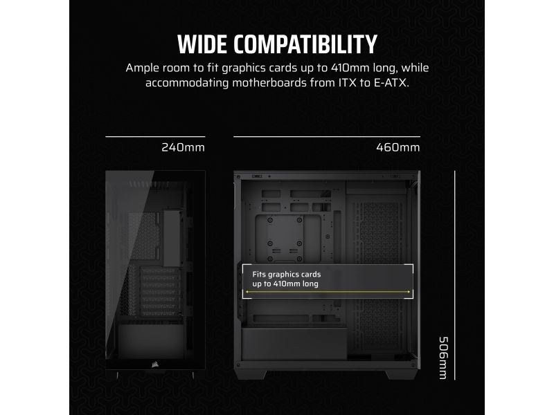 CORSAIR 3500X - Mid tower - utvidet ATX (E-ATX) - sidepanel med vindu (herdet glass) - ingen strømforsyning (ATX) - svart - USB/lyd