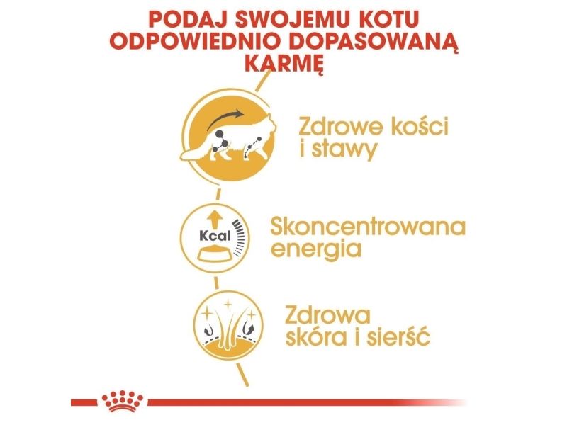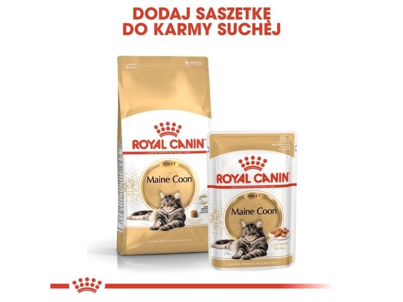 ROYAL CANIN® Maine Coon Adult-vådfoder i sovs er specielt udviklet med denne specifikke races behov i tankerne. Du kan være sikker på, at det er lige så vigtigt for os, som det er for dig, at opfylde din maine coons ernæringsmæssige behov. Der skal lægges særlig vægt på at støtte dens generelle sundhed og gode tilstand. Foderet er beriget med taurin, DHA og EPA (omega 3-fedtsyrer), der hjælper med at opretholde muskel- og knoglestyrken og understøtter en sund hjertefunktion.