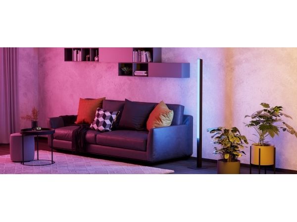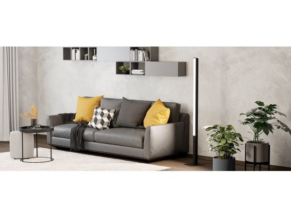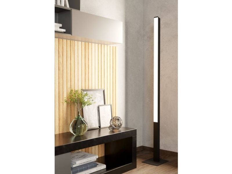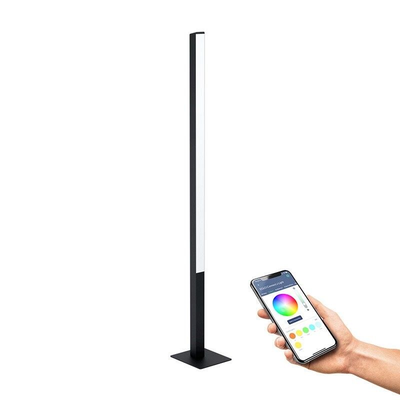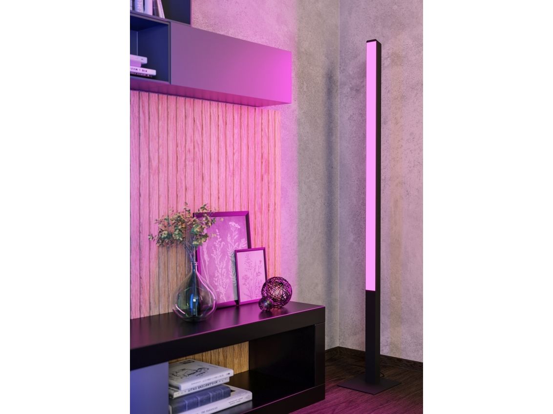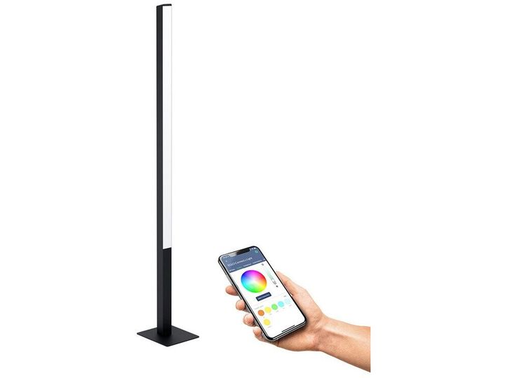 EGLO CONNECT-Z SIMOLARIS-Z gulvlampe i sort. Med fodafbryder. Højde 161,5 cm, længde 5,5 cm, bredde 5,5 cm. LED, 35 watt, 4200 lumen, 2700-6500 kelvin, RGB + Tunable white. Lampen kan dæmpes og styres med fjernbetjening (medfølger ikke), via AwoX Home Control app (gratis), eller ved stemmestyring. Zigbee er kompatibel med Amazon Alexa og Google Assistent. IP20. Dette produkt indeholder en lyskilde med energieffektivitetsklasse: F.