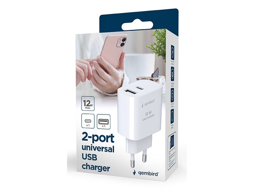 This Gembird USB charger is the ideal power solution for your cellular phones and tablets. It's designed to ensure your devices receive efficient and safe charging, thanks to its built-in overload and short circuit protection. With the capability to support both USB-C and USB-A connectors, it offers versatile charging options for a wide range of devices. The charger is compliant with numerous standards, including RoHS and ISO 9002, reflecting its quality and reliability. Whether at home or on-the-go, this power adapter is perfect for keeping your devices powered up and ready to use.