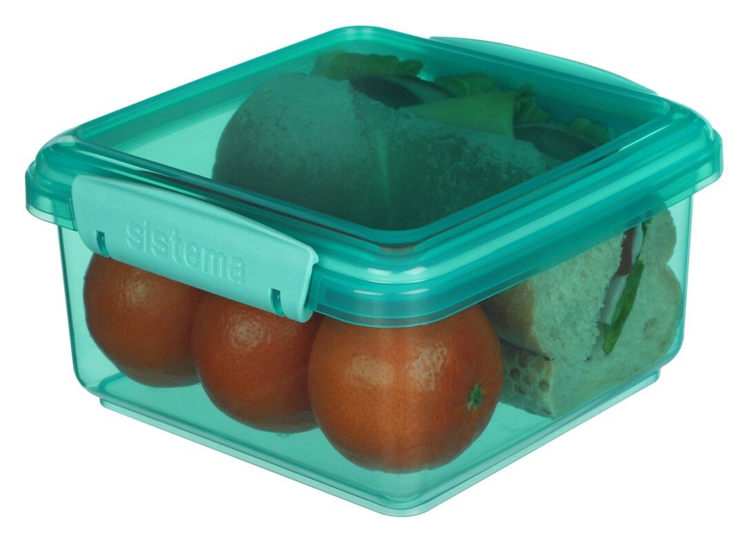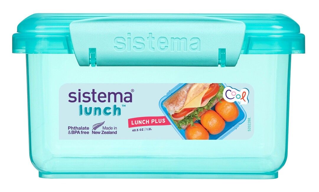 Lunch Plus fra sistema er en utrolig alsidig madkasse, der kan anvendes som madkasse til børnehave og skole, opbevaringsboks i køleskabet og meget mere. Lunch Plus passer perfekt til en god portion salat, men kan også rumme en lækker sandwich eller rugbrødsmadder. Lunch Plus er i smarte, transparente farver, så det er nemt at se indholdet i boksen uden at åbne den. De letlåsende klips og gummipakning i låget sørger for at din mad forbliver frisk i længere tid, og dette produkt er stabelbart sammen med øvrige sistema produkter. Fås i de tre flotte farver: Teal, Blue og Pink. Tåler opvaskemaskine (øverste hylde), fryser og opvarmning i mikroovn (uden låg). 100% fri for BPA og Phthalater.