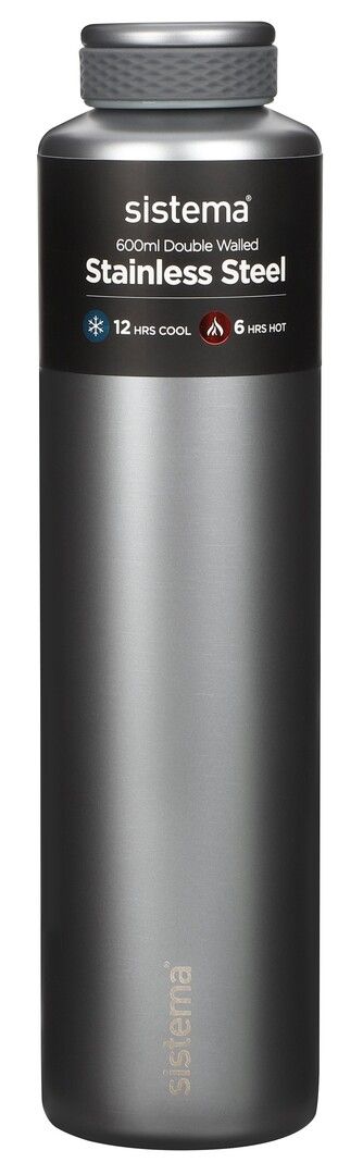 Stainless Steel 600ml fra sistema er en lille, fiks og elegant termoflaske, som passer perfekt til de mindste skolebørn eller en hurtig kop te/kaffe til cykelturen. Den rustfri stålflaske er fremstillet i dobbelt isolering for at indkapsle temperaturen længere, samt af højkvalitets rustfrit stål, der ikke ruster over tid. 100% lækagesikkert isoleret låg sikrer, at du kan have den med i tasken uden bekymringer. Fås i de flotte farver: Future Dusk (blå), Fig Purple (bordeaux), Wild Teal (grøn), Peace Blue (lyseblå), Wintergreen, Black. Termoflasken holder væsken kølig i op til 12 timer og varm i op til 6 timer. Tåler ikke opvaskemaskine, mikroovn, fryser og væske med kuldioxid.