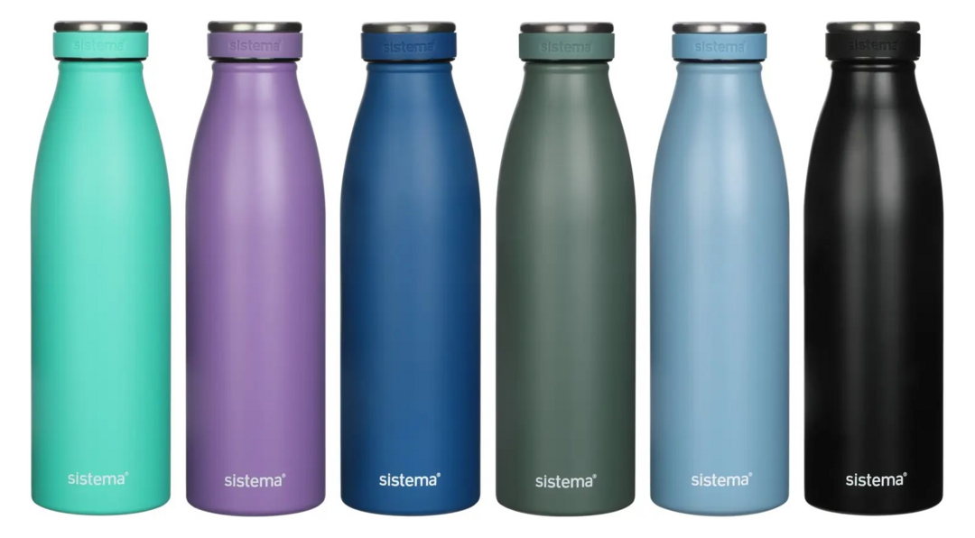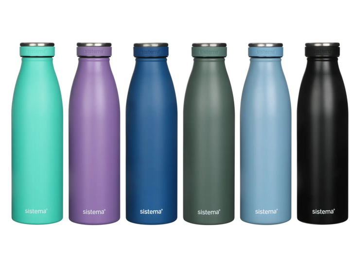 Stainless Steel 500ml fra sistema er blandt bestsellerne til både de lidt større børn og voksne. Drikkeflasken i rustfrit stål er perfekt til skole, arbejde, sport og picnic. Den stilfulde, populære stålflaske er fremstillet i dobbelt isolering for at indkapsle temperaturen længere, samt af højkvalitets rustfrit stål, der ikke ruster over tid. Fås i de flotte farver: Ocean Blue, Minty Teal, Misty Purple, Coast Blue, Nordic Green og Black. Termoflasken holder væsken kølig i op til 12 timer og varm i op til 6 timer. Stainless Steel er designet til at holde i årevis uden at gå på kompromis med ydeevnen.Tåler ikke opvaskemaskine, mikroovn, fryser og væsker med kuldioxid.