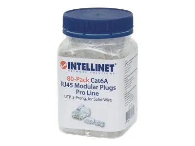 Intellinet RJ45 Modular Plugs Pro Line, Cat6A, UTP, 3-prong, for solid wire, 50 µ gold-plated contacts, 80 pack - nettverkkontakt