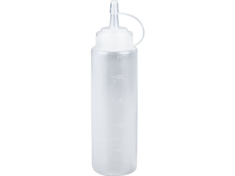 | • Genanvendelig • Målstreger hjælper til korrekt dosering og minimerer spild • Uundværlig i det travle, professionelle køkken • Praktisk og Hygiejnisk • Låg af PP gør det nemt at åbne og lukke flasken • Fødevaregodkendte og holdbare materialer |