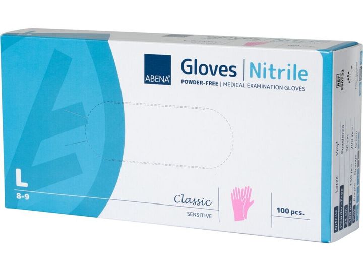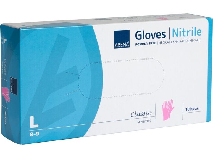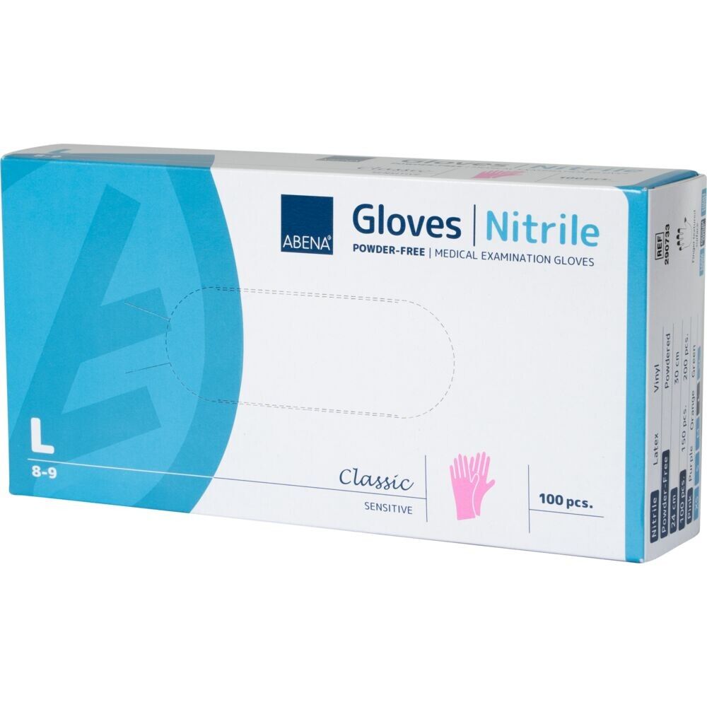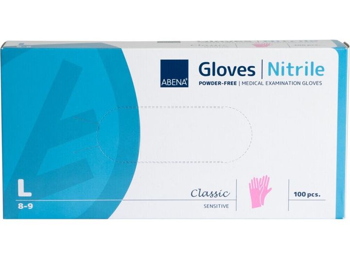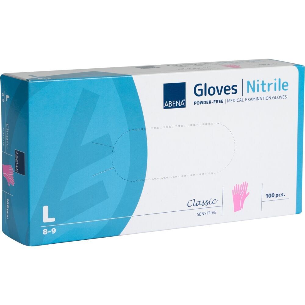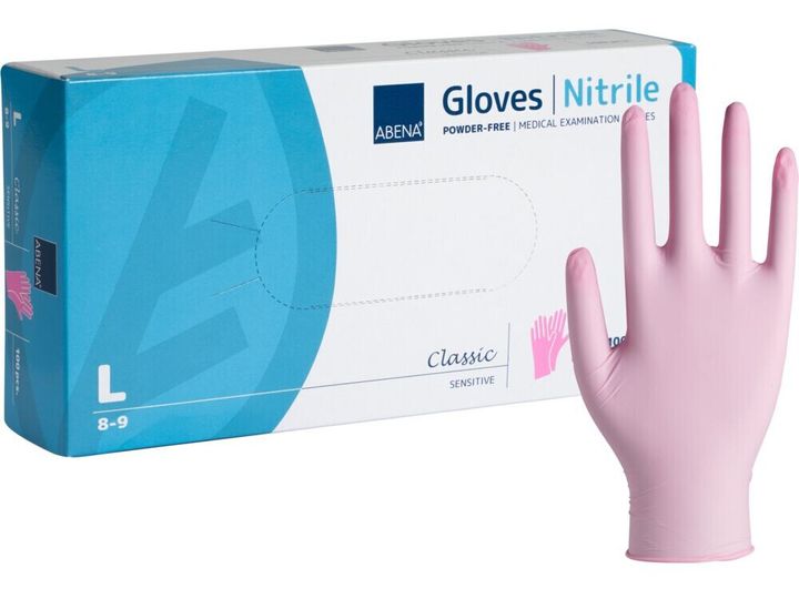 Undersøkelseshanske, ABENA Classic Sensitive, L, rosa, nitril, pudderfri - (100 stk.)