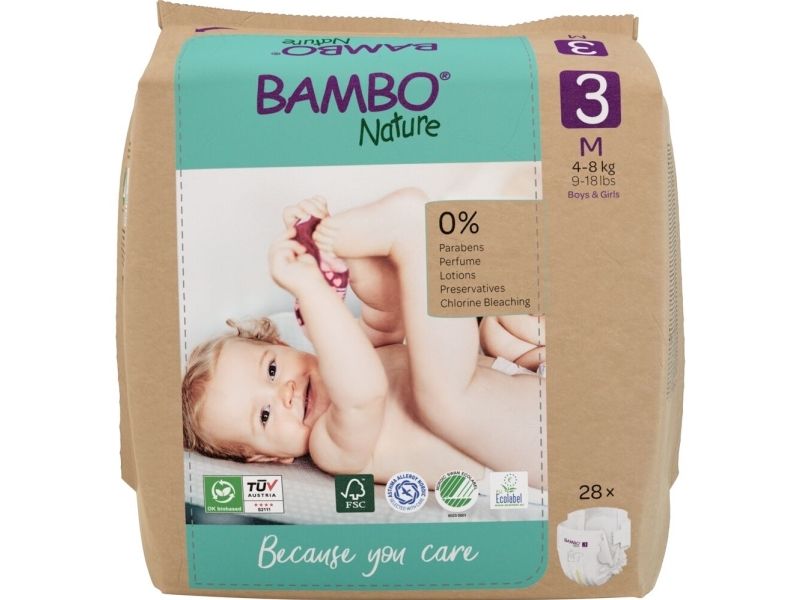 Babybleie, tapebleie, miljømerket, Bambo Nature, 3, papirpose, papirpose, 4-8 kg - (6 pakker x 28 stk.)