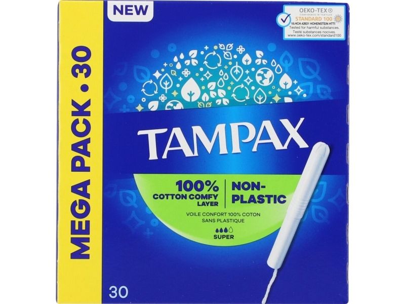 Tampon til brug i forbindelse med menstruation. Tamponen er i et blødt og glat materiale, der gør den nem at placere og fjerne igen. Ved anvendelse udvides tamponen i bredden, således at gennemblødning undgås.