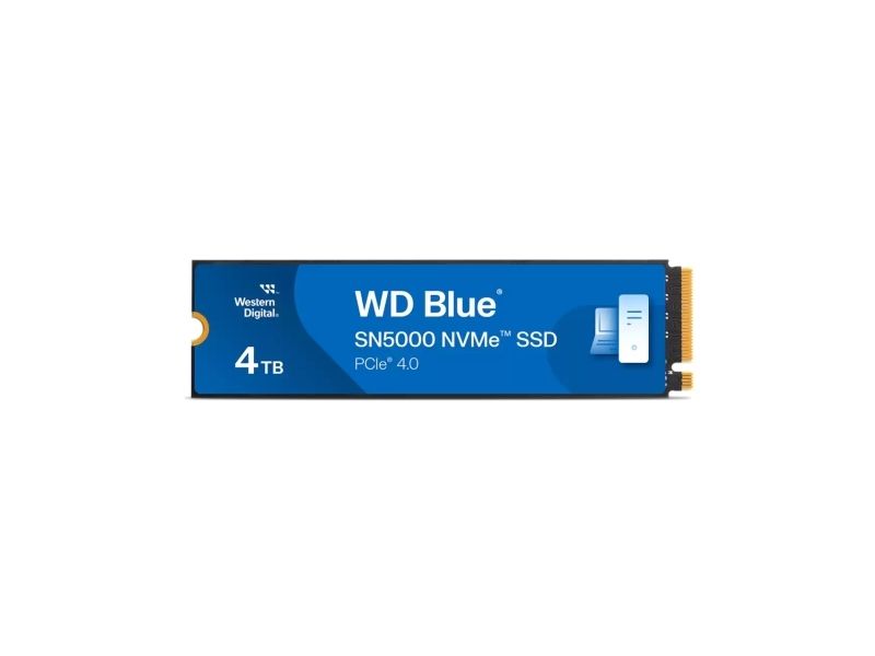 The WD Blue SN5000 solid state drive is a high-capacity, high-performance storage solution designed to meet the needs of demanding computing environments. With a 4 TB capacity, it offers ample space for all your storage needs, from large multimedia files to extensive software libraries. This SSD leverages the speed of PCI Express 4.0 x4 (NVMe) interface, delivering fast data transfer rates of up to 5,500 MBps read and 5,000 MBps write speeds, making it suitable for quick file access and fast saving times.