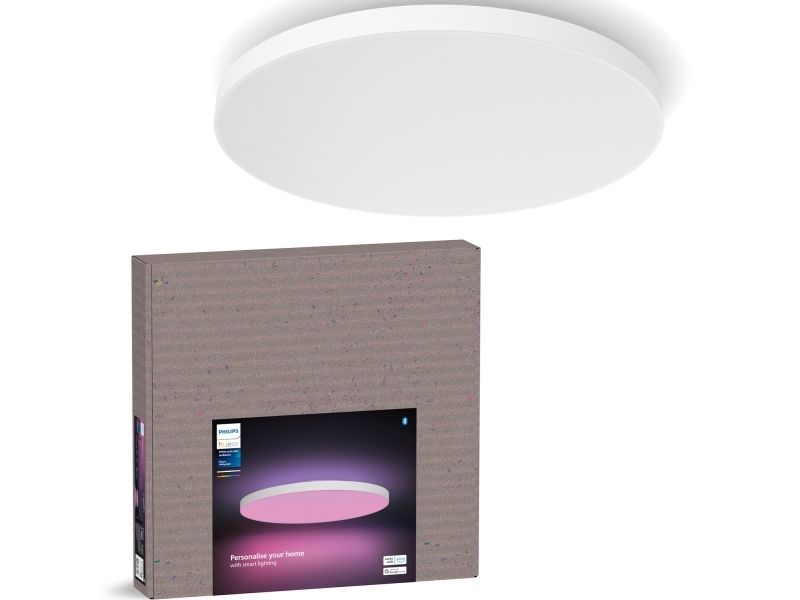 Philips Hue White and Color Ambiance Datura taklampepanel kombinerer funksjonalitet og stil, noe som gjør den til et ideelt valg for ulike rom som kjøkken, stue og soverom. Denne moderne lyskilden har en slank design og en liten lampeskjerm, og gir en diffus lyseffekt som tilfører et snev av eleganse til ethvert rom. Lampen styres via Bluetooth og er kompatibel med Philips Hue-appen, noe som gjør det enkelt å justere og kontrollere belysningen. Med opptil 16 millioner farger som kan tilpasses, er det enkelt å skape den perfekte atmosfæren. Datura er utstyrt med innebygd LED-teknologi, og gir en lysstyrke på 3300 lumen samtidig som energieffektiviteten opprettholdes. Med en levetid på 25 000 timer er denne taklampen designet for pålitelighet. Integrasjonen med intelligente assistenter som Google Assistant og Alexa øker brukervennligheten og gjør det mulig med stemmestyrt belysning. Philips Hue Datura løfter lysopplevelsen din og integreres sømløst i økosystemet for smarte hjem.