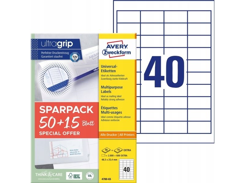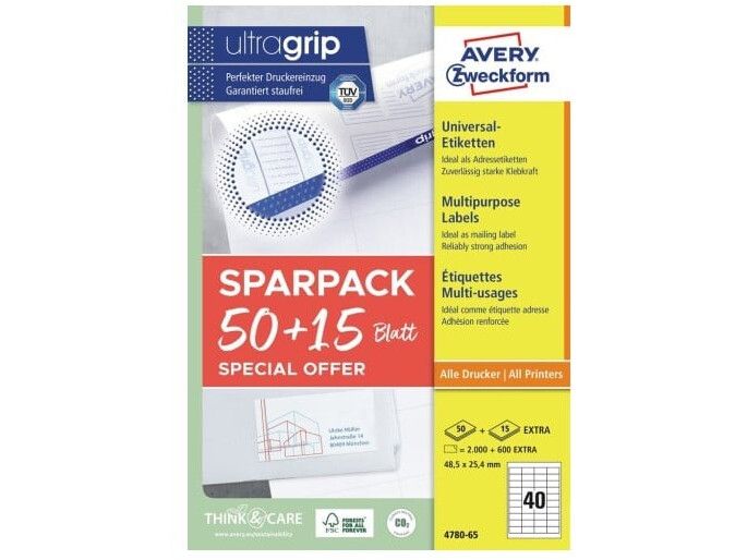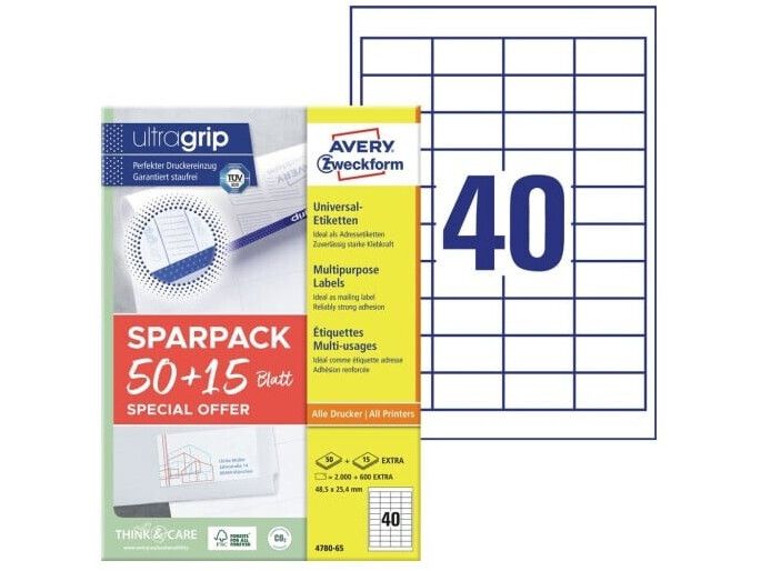 | • Mere for pengene: 15 ark EKSTRA i pakken (+600 etiketter) • Med Ultragrip for præcis udskrivning uden papirstop • Universaletiketter kan printes i alle printere • FSC® certificerede • Design og print nemt med GRATIS skabeloner |