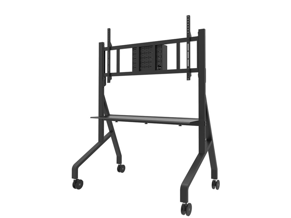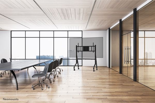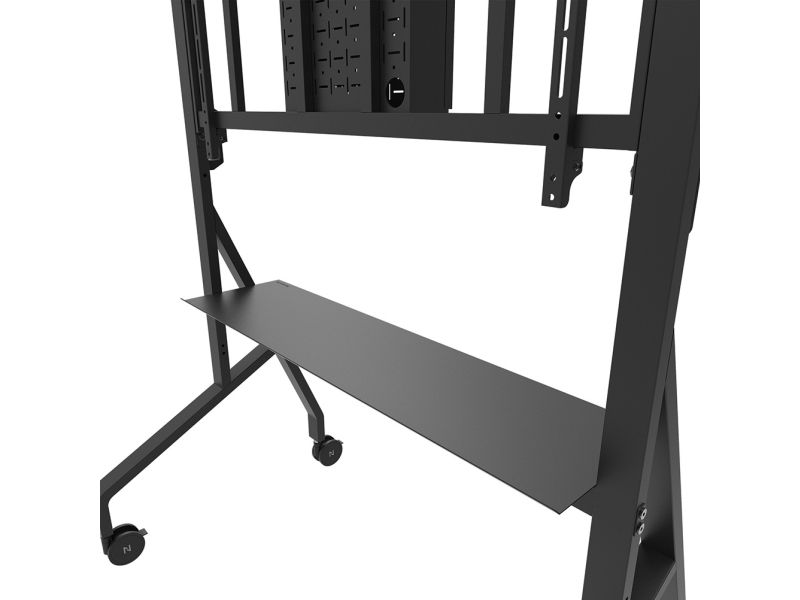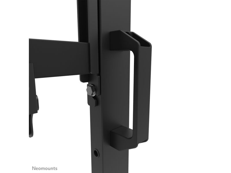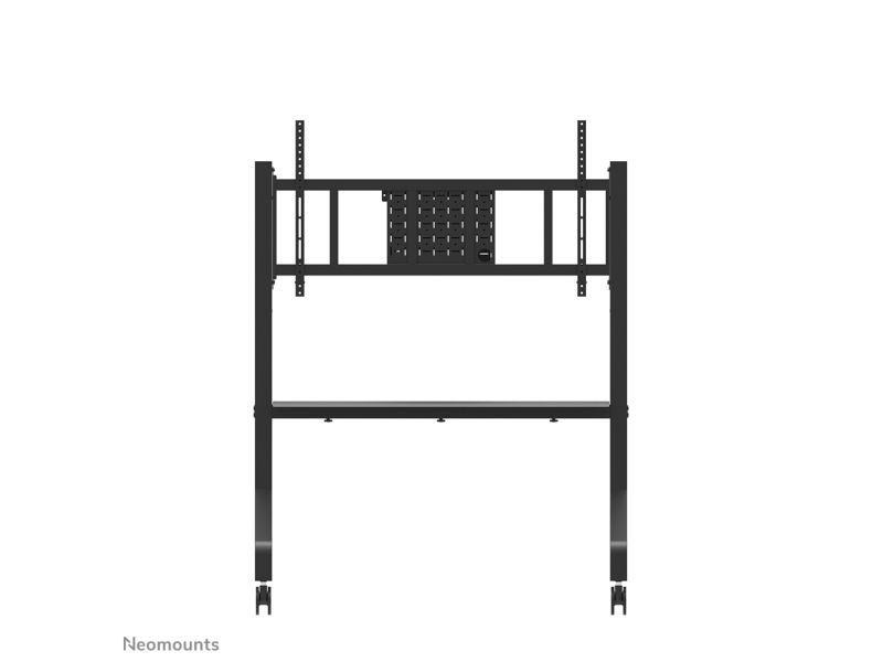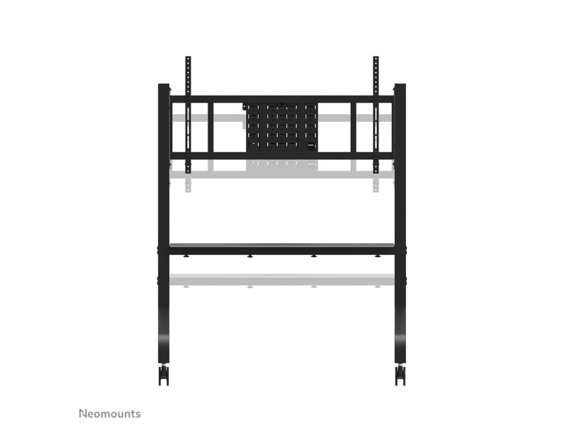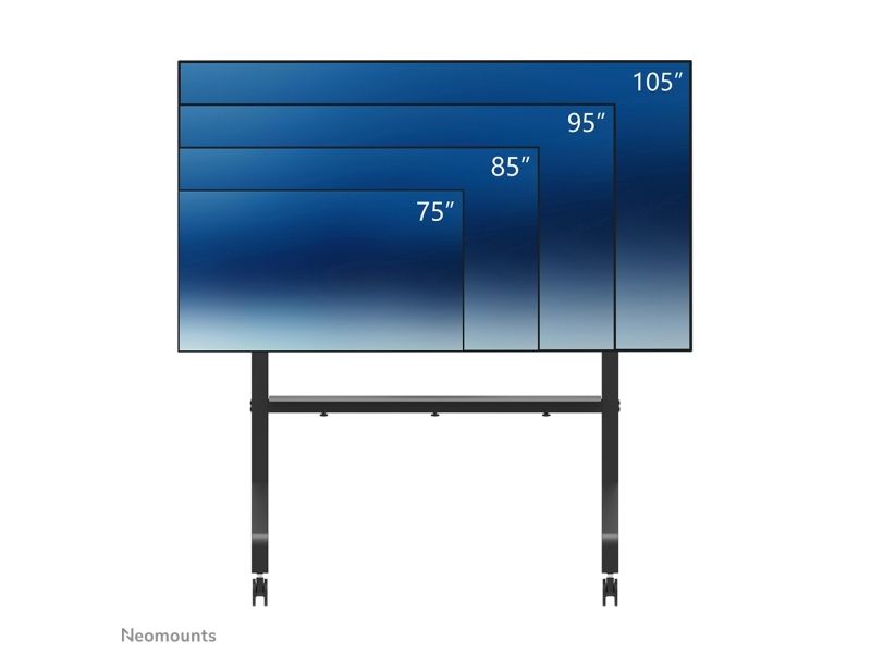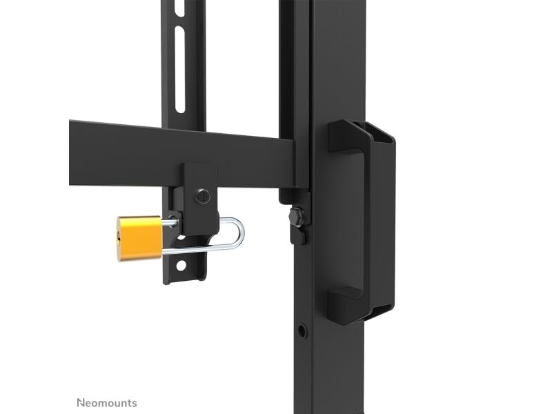 The Neomounts FL50-575BL1 offers a blend of durability, flexibility, and security. Designed to support large displays ranging from 65"-110", this cart is built with high-quality steel, ensuring it can handle up to 125 kg with ease. Its height can be adjusted between 129 - 139 cm, allowing for customizable viewing angles suitable for any application, from corporate presentations to educational content. Mobility is a breeze thanks to its four wheels, making it simple to move the stand from room to room or across various locations. Additionally, the stand's lockable feature, which supports the use of a padlock (not included), provides an extra layer of security, ideal for use in public spaces or areas with high foot traffic. With a flat panel mount interface that accommodates sizes from 100 x 100 mm to 1100 x 600 mm, the FL50-575BL1 meets a wide range of display needs.