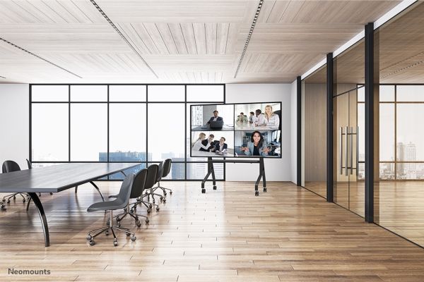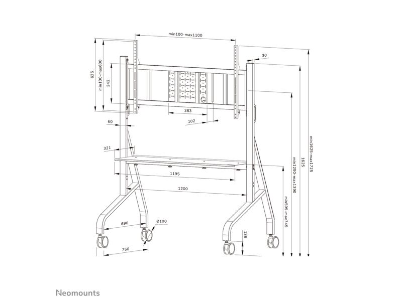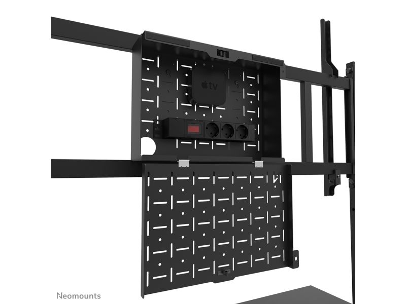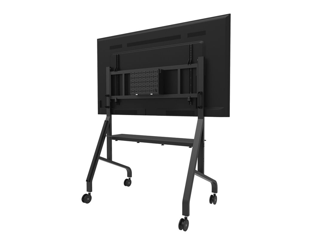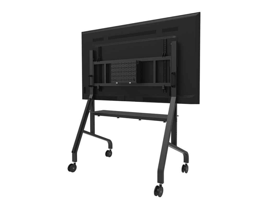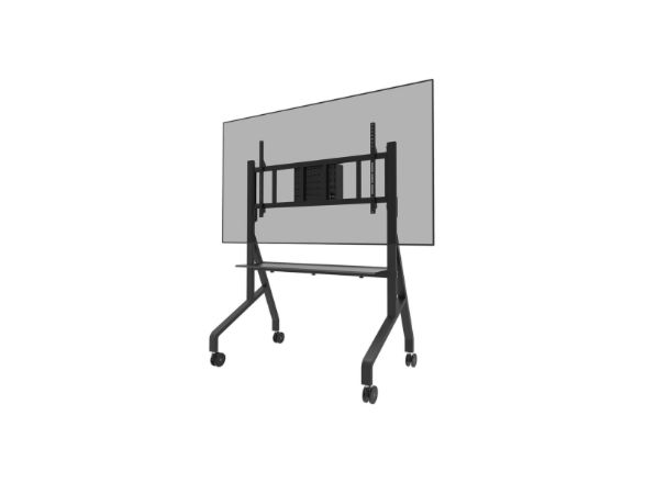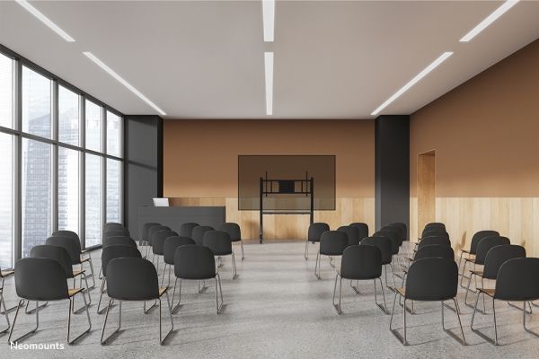 The Neomounts FL50-575BL1 offers a blend of durability, flexibility, and security. Designed to support large displays ranging from 65"-110", this cart is built with high-quality steel, ensuring it can handle up to 125 kg with ease. Its height can be adjusted between 129 - 139 cm, allowing for customizable viewing angles suitable for any application, from corporate presentations to educational content. Mobility is a breeze thanks to its four wheels, making it simple to move the stand from room to room or across various locations. Additionally, the stand's lockable feature, which supports the use of a padlock (not included), provides an extra layer of security, ideal for use in public spaces or areas with high foot traffic. With a flat panel mount interface that accommodates sizes from 100 x 100 mm to 1100 x 600 mm, the FL50-575BL1 meets a wide range of display needs.