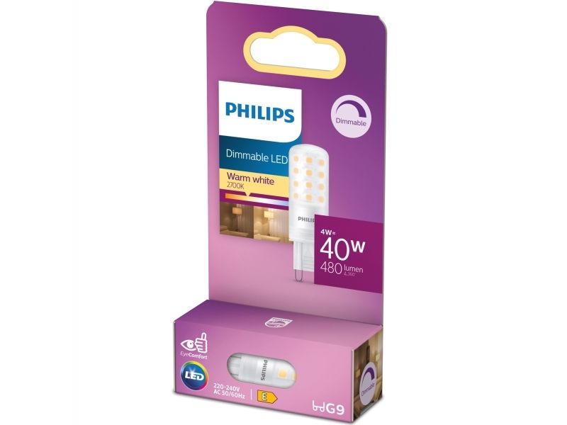 Philips LED - LED - form: G9 - mattslipt finish - G9 - 4 W (ekvivalent 40 W) - klasse E - varmt hvitt lys - 2700 K