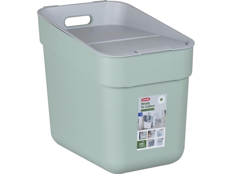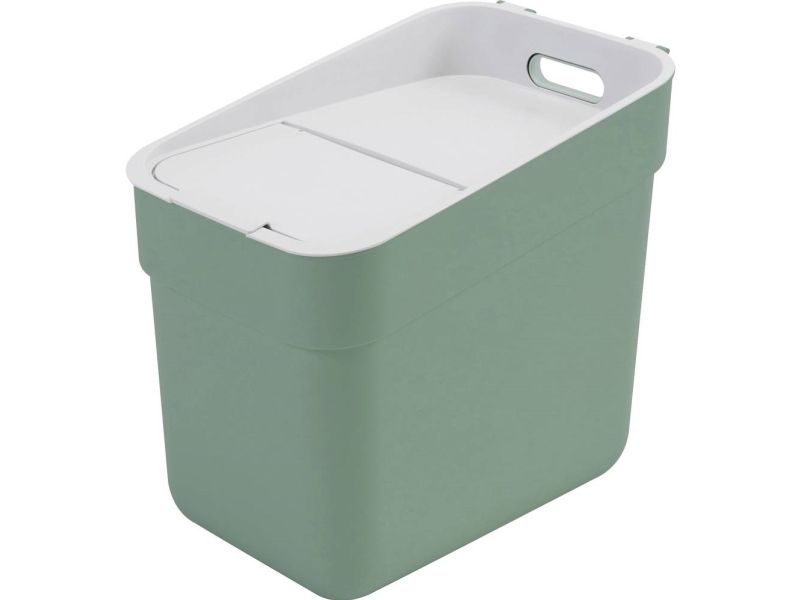 READY TO COLLECT skraldespand [20L], grøn Inklusive vægfiksering Inkl. Mærkat Holder til skraldesæk Beholder med låg fremstillet af 100% genbrugt materiale, ideal til sortering, sortering og opbevaring, med praktisk åbning i låget for nem adgang ved stablede beholdere, kan valgfrit anbringes på en væg/dør eller anbringes fritstående - Inklusive vægfiksering - Inklusive holder til skraldesæk Posets kant skjules af dækslets ramme, praktisk greb på bagsiden og i bunden for nem transport og tømning af beholderen.