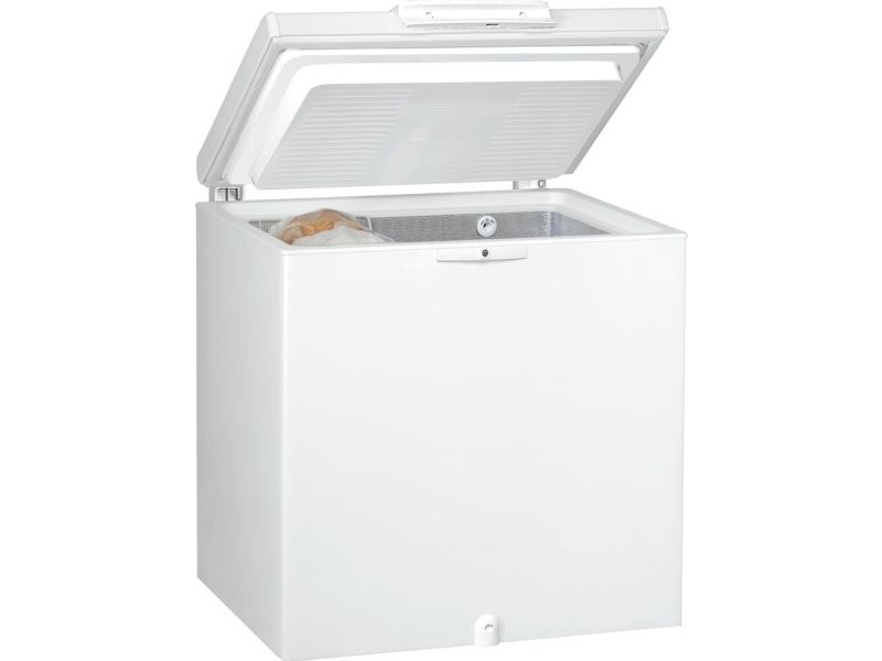 Brand- Whirlpool. Model- WH2010 FO 2. Width- 80.6 cm. Depth- 64.2 cm. Height- 86.5 cm. Weight- 27.9 kg. Colour- White. Freezer type- Horizontal. Mounting method- Stand (base). Voltage- 220 - 240V. Energy Efficiency Class- E. Annual energy consumption- 201 kWh. Volume- 204 l. Noise level- 42 dB. Freezing capacity, kg / 24h- 11. Automatic defrost- No. Safe time in case of power failure- 26 h. Quick freeze- Yes. Number of bags- 1. Changeable door direction- No. Number of drawers- 1. Control- Electronic. Mandatory warranty- 24 mo.