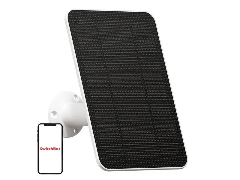 Designed for SwitchBot Outdoor Cam Use solar energy to charge your outdoor battery cam and you'll be able to stay charged for even longer to help reduce down time. Non-stop Power Supply Features an output of 5W. With just a few hours of direct sunlight a day, your outdoor battery camera is able to run 24 7 and allows you to get rid of the hassle of frequently charging your camera battery. Rain or Shine, Use with Confidence SwitchBot solar panel waterproof, and perfectly safe to be used outside, even in the rain, snow and other harsh weather conditions. Operating temperature range is minus 4F to 122F. Easy Installation Mount your solar panel to a bracket and connect your outdoor camera, its that simple. With 360 degree rotation, a 90-degree tilt adjustable bracket and 3m power cable, you can install your solar panel anywhere to receive maximum solar energy.