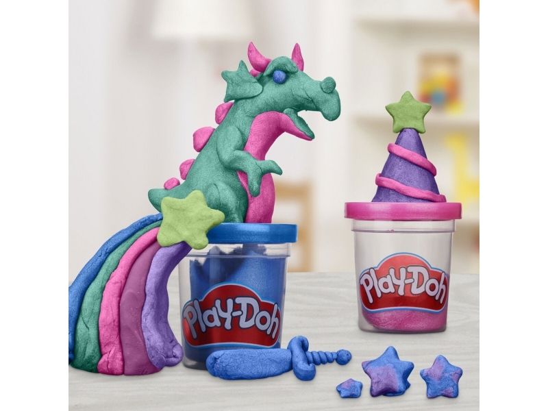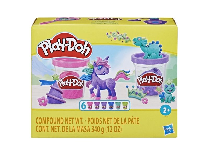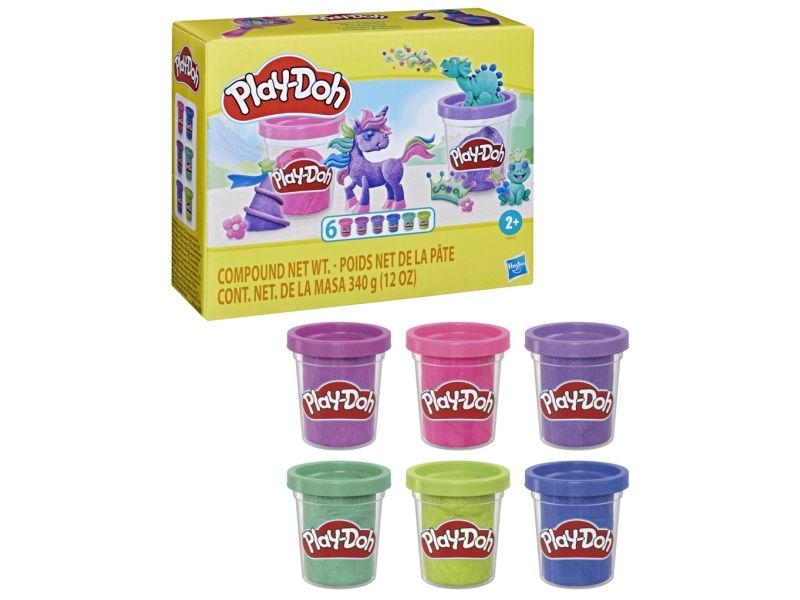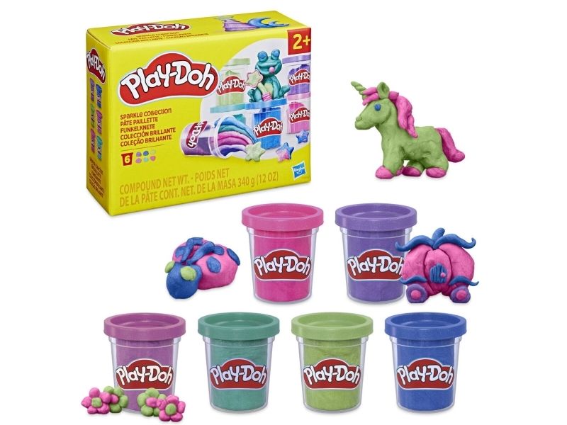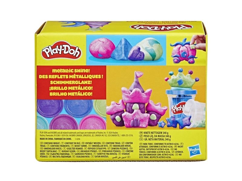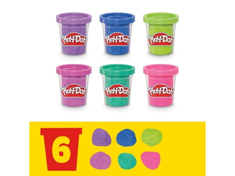 La fantasien få skinne med Play-Doh Sparkle Collection! Denne 6-pakningen med Play-Doh inneholder metallisk modellérmasse i rosa, blått, to lillafarger og grønt som du kan bruke til å lage vakre og glitrende kreasjoner. Hver boks inneholder 56 g med myk og formbar Play-Doh-modellérmasse med glitter laget av det naturlige mineralet glimmer. Settet er et flott tillegg til kunst og håndverkutstyr, som påfyll av Play-Doh-sett, eller bare som en morsom aktivitet der barna kan la fantasien skinne. Hasbro, Play-Doh og alle tilhørende produkter er varemerker som tilhører Hasbro.