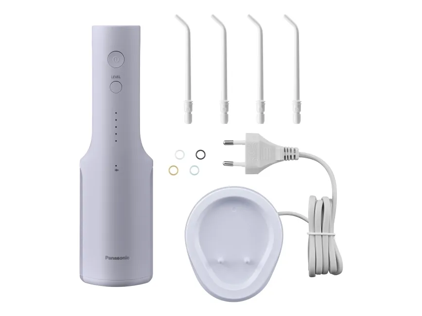 Panasonic EW-DJ27. Water tank capacity: 0.2 L, Product colour: White, Product type: Cordless oral irrigator. Power source: Battery, AC input voltage: 100 - 240 V. Width: 64 mm, Depth: 80 mm, Height: 294 mm. Package type: Box. Number of heads: 4 head(s)